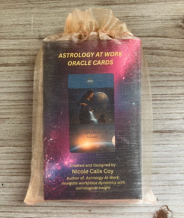 The Astrology at Work Oracle Deck uses the dynamics of astrology and was designed to guide individuals in personal times, throughout their workday, during happy moments, stressful times, moments of confusion, or when seeking support on a project.
